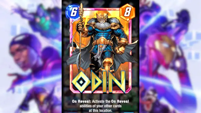 Odin (On Reveal: Activate the On Reveal abilities of your other cards at this location.) works well with all On Reveal effects. The All-Father will make Black Panther’s effect fire again making even a completely unbuffed Panther go from 8 to 16. If you managed to get another buff into Black Panther, either from Nova (When this is destroyed, give your cards +1 Power), Blue Marvel (Ongoing: Your other cards have +1 Power), or a Location like Stark Tower (After turn 5, give all cards here +2 Power), Odin will let Black Panther double that Power, too.