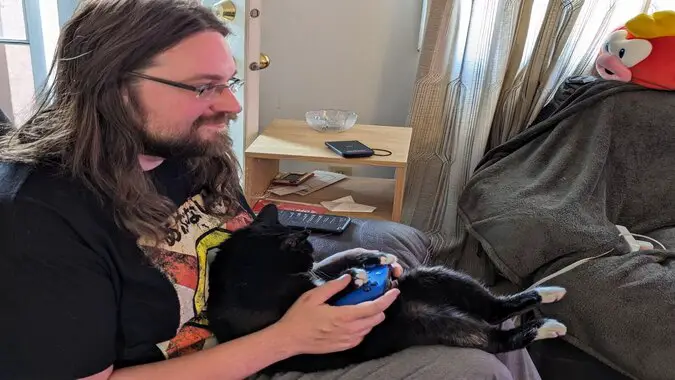 Fun fact! He actually managed to run around in circles a little bit in Fall Guys before deciding that this was much too undignified and squirming away.