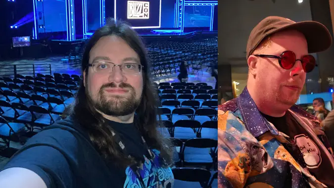 More branding! Tiffany’s light shirt paired well with her snazzy red jacket, and I loved all the bracelets she was wearing. Chris dressed in more black (no, really, was there a dress code?) but at least he spiced it up with a red shirt, and a Diablo 4 branded jacket.