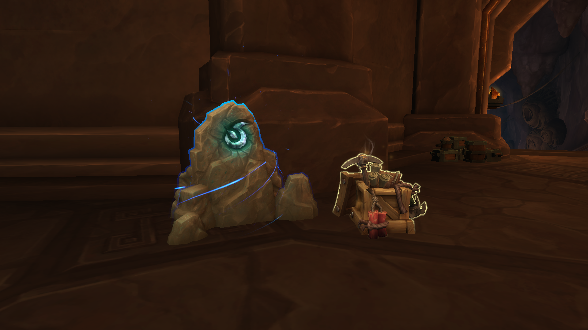 Throughout the Delve, you can acquire extra abilities by opening webbed treasure chests or killing random elites. These abilities only last for a minute but they do stack! Your NPC companion gains experience by completing Delves and can level up to access new abilities. As your make your way through a Delves, you’ll also have a chance to find a new item called Curios that act as trinkets for your companion and further enhances their abilities when equipped. The NPC companions also have some unique behavior. There are material gathering nodes through Delves and your companion will interact, collect, and bring you the materials. If you AFK, the NPC will find a place to lean against and go to sleep, waiting for you to return.