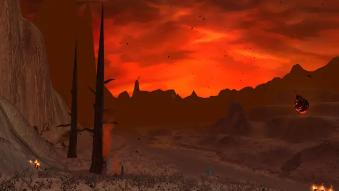 Blackrock Eruption is on a consistent timer with the first event of the day beginning at 12AM and repeating every two hours from the 12AM start time — though right now it appears to be happening an hour earlier on the odd-hours of the clock instead. When the event begins it will last a total of 60 minutes with a countdown timer appearing at the top of your screen with a message saying, “Defend against the minions of Ragnaros!” While active new types of enemies, such as the Firelands Invaders, and hazardous environments, including deadly meteors raining from the sky, will appear across all 3 areas. Even though the event happens at the same time in 3 zones, each zone varies in what you can do while the event is active.