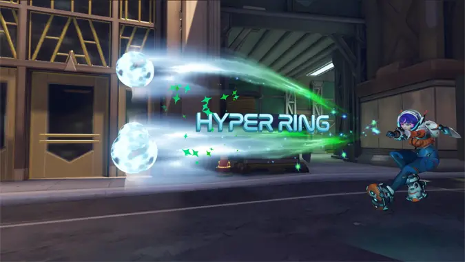 Her second ability is the Hyper Ring, an ability that opens a large portal on the map the entire team can speed through. The Hyper Ring stacks with other movement abilities up to 75% of the speed limit of the game. This ability has a 16-second cooldown.