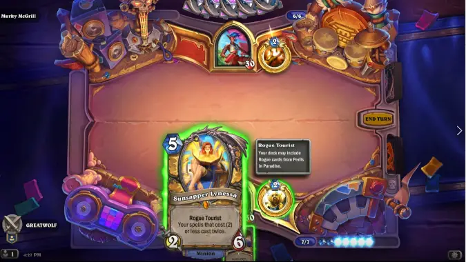 This week’s Tavern Brawl is an introduction to Perils in Paradise where we get to try out some of the expansion’s most interesting cards and deck recipes — and win a card pack in the process. Though oddly absent from Fractured in Alterac Valley, this type of Brawl has become a regular addition when we get a new expansion. Most recently, we had a Badlands Recipe for Showdown in the Badlands, and a Whizbang Recipe for Whizbang’s Workshop.