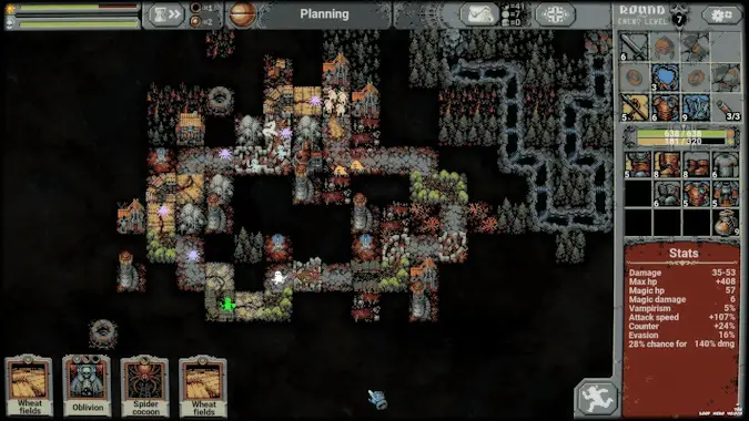 Loop Hero is a divisive game — either you love it, or you don’t. After the world ends at the hands of a reality-obliterating lich, you find yourself in the void, tasked with reassembling the world from scratch to gather resources and build up what might be the last village left in the world. The method of doing this: placing buildings, landscape elements, and more — from a card deck you build before each round — around a looped path that your hero constantly circles, picking up treasures and auto-battling enemies they encounter. How many loops can you make? Can you rebuild a shattered reality? Only one way to find out.
