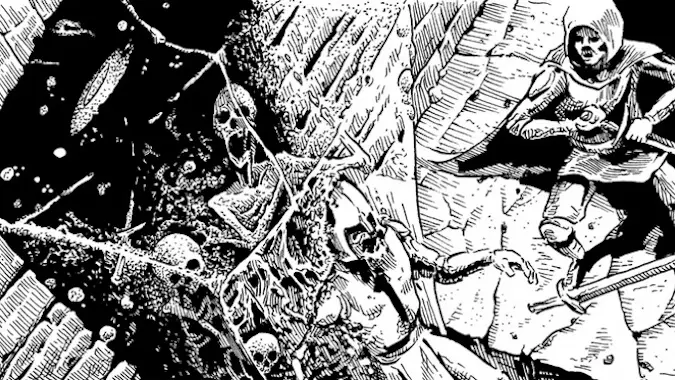 Written by designer Kelsey Dionne (who also wrote the highest-rated adventure ever on the DMs Guild website, Secrets of Skyhorn Lighthouse), Shadowdark aims to evoke the gameplay and general feeling of “Old School Renaissance” (or OSR) games without necessarily forcing people to learn a tabletop game that is entirely alien to them — a lot of modern game design sensibilities are smart for a reason, and Shadowdark uses a lot of them where it makes sense.