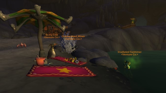 This quick quest chain is different from most of our interactions with the Venture Company. Instead of fighting, we help the Venture Company secure its mining operation alongside Gazlowe and the Niffen. With our quests complete, these three groups are discussing exchanging technology in a (mostly) friendly fashion, and as they walk away the company chief Jenni Boombuckle drops a casual mention of Undermine, the Goblin city that has long been in Warcraft lore but never visited (and for some time was speculated to be destroyed along with Kezan in the Cataclysm). We may not be friends with the Venture Company, but we’re not not friends, either.