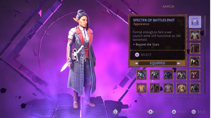 I think it’s a neat look with some nice details — though it isn’t anywhere near as elaborate as the Blood Dragon pre-order sets, a version of the Mass Effect Blood Dragon armor which was itself a tribute to Dragon Age, now come full circle. Still, I like this version with coat, and I think my Rook will be wearing it for a while.