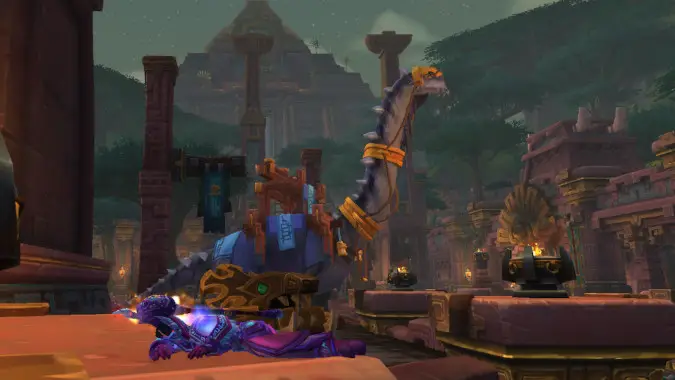 The new achievement, A Farewell to Arms, rewards Jani’s Trashpile. Jani is the loa of discarded things, and throughout BFA we found him in various heaps of garbage sticking up for the less fortunate. We don’t know too much about this mount yet, but it looks like a ground mount that transforms your player rather than one you ride atop (in the vein of Sandstone Drake).