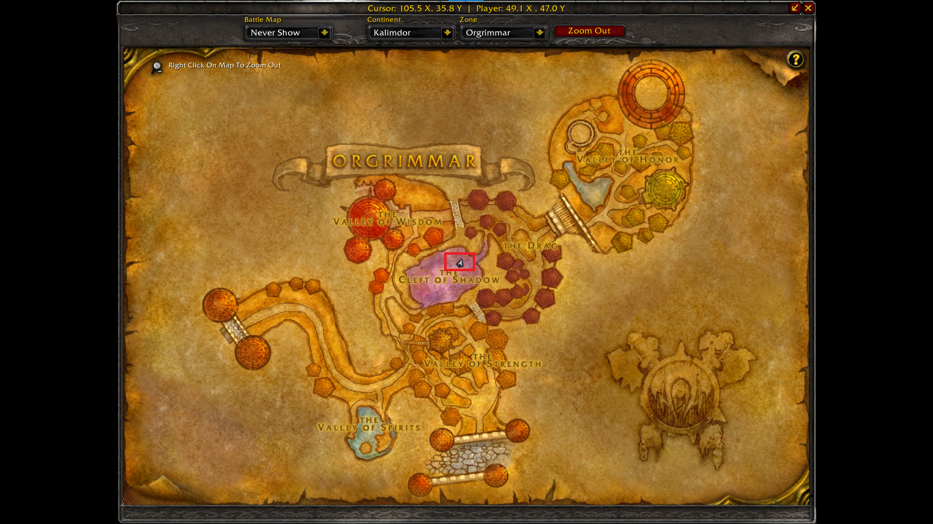 - Cleft of Shadow, Orgrimmar (49, 46)
