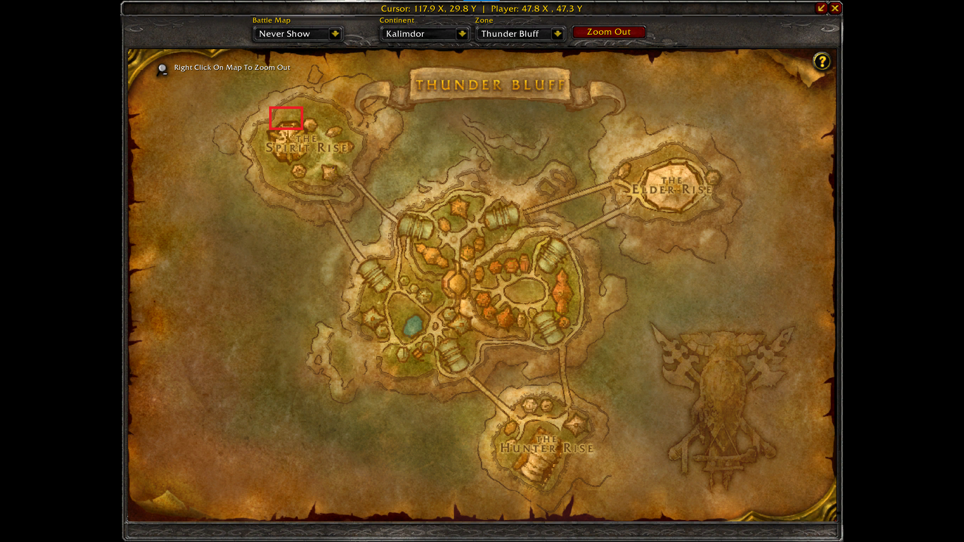 - Pools of Vision/Spirit Rise, Thunder Bluff (22,13)
