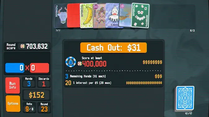 - The second biggest tip I can give to making it further into runs and seeing rarer and more powerful Jokers is to manage your econ very carefully. The game gives you $1 in interest at the end of a round for every $5 you have in your bank, up to a max of $5 if you have $25 (increasing to maximums of $10 and $20 with the Seed Money and Money Tree vouchers, respectively). Getting to and staying above interest cap to rake in that extra money is the best way to ensure you can reroll for more Joker options, and that — in cases where you see an upcoming Boss Blind is absolutely going to hose you — enables you to have an emergency fund to dig for things like Luchador to save you.