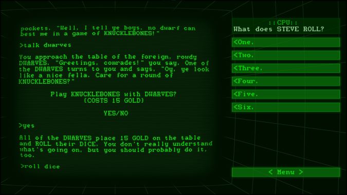 Our final selection is a throwback to old text games like Zork and Colossal Cave Adventure. Only this time you’re not the player; you’re the CPU and your mission is to help complete the game by figuring out what the player is trying to do. One gigantic catch: the player is an idiot. Good luck!