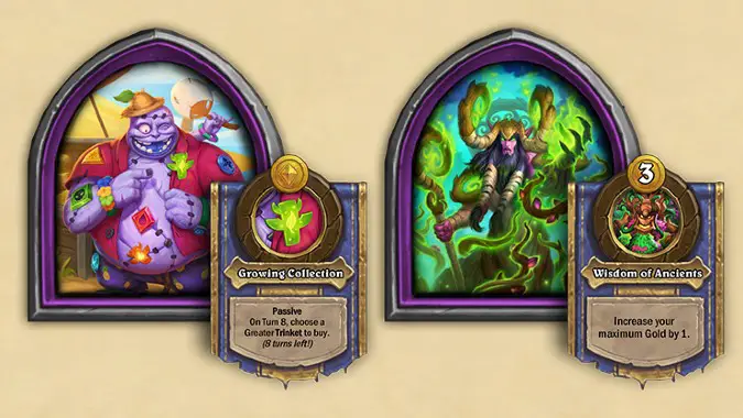 The Trinket mechanic ended up being one of the most enjoyed by players, overall. Trinkets add some power in ways that feel more “controllable” than Anomalies, but less convoluted than Buddies — you just buy them and you’re done — while also adding some variety on each game, much like Quests do, since there are so many options that pair up with so many different heroes. It should be fun to play with this mechanic again.