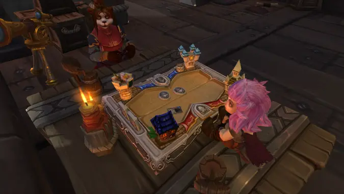 I’ve always loved the backstory of Hearthstone existing as a trading card game within World of Warcraft. We’ve seen references to it many times, and even an entire event celebrating the spin-off’s 10th anniversary. I’m definitely going to need a table dedicated to a Hearthstone game board in my rumpus room, and I’m hoping that we’ll get a few different customization options for it in the vein of the huge number of boards in the actual game.