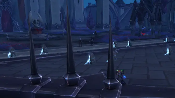 After spending a decent amount of time scouring the realms of Azeroth for the best simple yet lethal-looking spike, I settled on these sharp numbers from Revendreth. Some of the battlements atop Castle Nathria have gigantic spikes that look they could skewer a wild gargoyle.