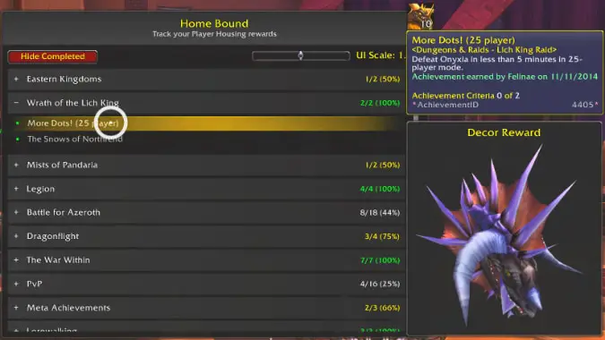 Home Bound addon for tracking achievement decor