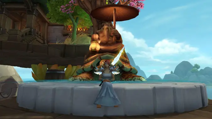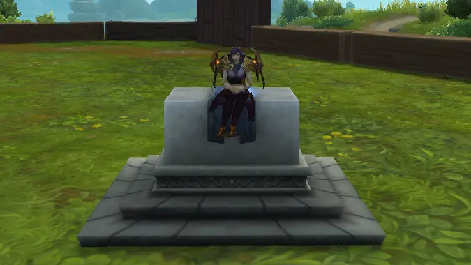 A very cool feature that players quickly discovered with Advanced Mode in World of Warcraft player housing is that you have a lot of control over the size and placement of objects, and with some careful positioning, you’re able to make furniture (or any sort of “edge” really) that you can sit on. A box? A chest? A barrel? A fountain or random ledge? You can make it “sittable” and have your character right click on it to express all of their comfort and relaxation, even if that particular piece of decor was not made for it.
