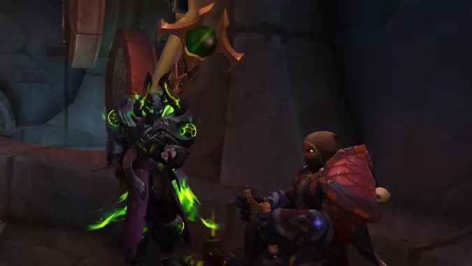 To get this Legion Remix Player Housing decor, head to the Broken Isles version of Dalaran and seek out Val’zuun in the Underbelly. You’ll find him just inside the entrance closest to Krasus’ Landing. After heading down the stairs, look to your left for a masked red Man’ari Eredar sitting against a wall.