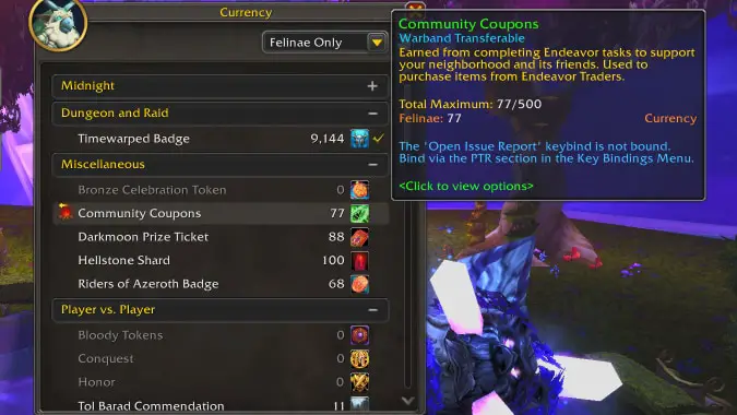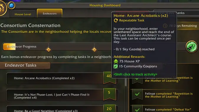 There’s nothing Blizzard loves more than adding another currency to World of Warcraft, and housing is no exception: Community Coupons are a new Player Housing-specific currency that you’ll find in the currency tab under the Miscellaneous category. On beta there is a currency cap of 500 Coupons, which are rewarded from Endeavor activities and can be spent at any Endeavor vendor you can reach (more on this in a minute).