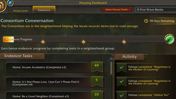 As a self-confessed Player Housing main now, I’m looking forward to the coming Neighborhood Endeavors feature due to released with the Midnight pre-patch. Guild leaders will have a bonus task at the start of each Endeavor cycle of selecting the Endeavor for their guild neighborhood by talking to the Steward next to the Neighborhood noticeboard.