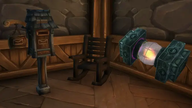 Gilnean Postbox (Inscription) — My favorite mailbox decor item in game is undoubtedly this one. It manages to be both fancy and simple, and even comes with a tiny lock so your Rogue neighbors are slightly inconvenienced when rifling through your letters. Gather up 35 lumber, and don’t forget that all post box decor is now fully functional when placed in your home or yard.