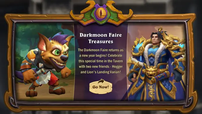 Last time we talked about Hearthstone pets, they cost $158, which we thought was egregiously high. Well, “good” news, everyone: this time, the extremely predatory Darkmoon Faire roulette brings not one, but two top tier rewards in the new Hogger pet and the Varian Mythic Skin. Double the top tier rewards… double the top tier costs!