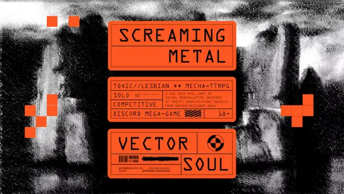 - Screaming Metal: Vector Soul bills itself as a mecha TTRPG about toxic lesbians piloting living machines for exorbitant amounts of money before hyperspace itself tears them apart. From the author of the incredibly cool OSR game Songbirds, Screaming Metal can be played solo, in pairs, in groups, or in megagames featuring as many people as you want — but in an interesting twist, it’s a competitive game, not a co-op one.