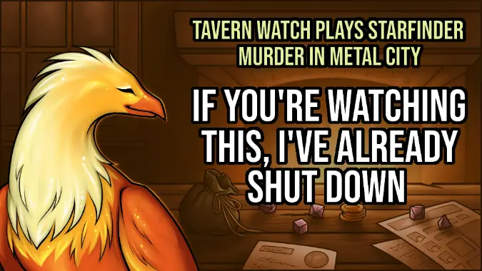 Tavern Watch Plays Starfinder: Murder in Metal City, episode 1: If you’re watching this, I’ve already shut down