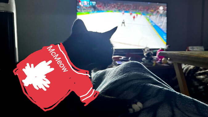 Bacardi got up early to watch the gold medal game with me. It’s easy to see who he’s cheering for, thanks to my favorite person gifting him this very real and not hand-drawn Team Canada jersey. He’d have his own, but he spends his allowance on treats. He’s still pretty bummed about the outcome of the game too, so you better bribe him well this week for your shiny loot.