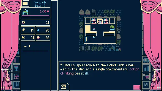 On Saturday over in the Blizzard Watch Discord, Anna Bell noted that the recently-released Titanium Court was “aggressively Phil U. coded.” She’s not wrong, of course; it has been on my wishlist since the demo launched a month or two ago, and an incredibly wry combination of match-3 puzzler, roguelite, and auto-battler about faerie courts trapped in a perpetual war in a surreal shifting reality, led by a queen who really just wants to go home but finds that her steward who holds all the answers is avoiding her as much as possible, is in fact squarely in my wheelhouse. Titanium Court is a game that’s not afraid to ask the big questions, like “what if you could replace intrusive thoughts with pleasant ones about baseball?” and “is the desire for a taco universal?”