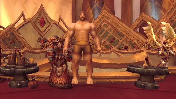 For some reason there is a mostly naked human just kind of floating there in the Warrior class hall. I do not know why he is there.