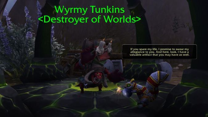 Back in the day I raided in AQ 40 when it was the hot new raid and we’d just mastered writing. One of the things that was weird and cool about that raid was, C’thun (the Old God who was the big boss of the raid) would randomly whisper things like Your heart will explode or your friends will abandon you to your raid. Now, my wife Julian used to play in the same room as I did, and as a result often C’thun would whisper to her and then to me within a second or so. As a result, the whispers would get mangled together, and we’d often hear Your heart will abandon you or your friends will explode, which to our mind was both every bit as creepy and also a touch more bizarre as threats go.