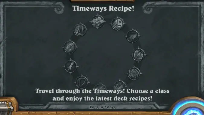 A new Hearthstone expansion, Across the Timeways, has just been released, and with it comes a brand-new "recipe" Brawl: you pick a class and the game provides you with the latest deck recipe from that class, so you can immediately play against someone.